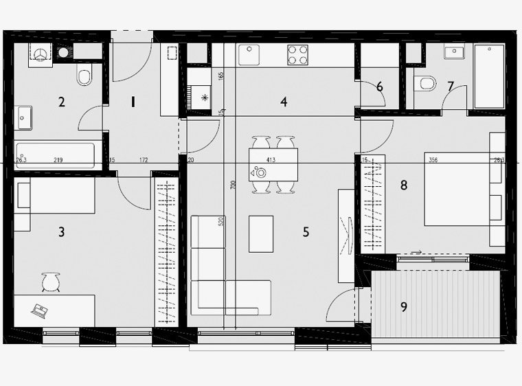 | 9 | Loggia (5,20m2 x 0,75) | keramika | 3,90 |