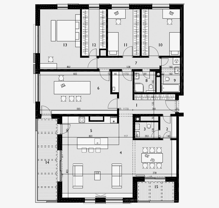 | 14 | Terasa (11,90m2 x 0,5) | keramika | 6,00 |